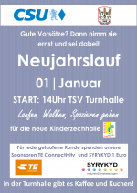 Der Neujahrslauf 2024 steht in diesem Jahr unter dem Motto: "Laufen für die Kinderzeche", genauer für unser neues Lagerhaus. Hier gilt ein Dank dem Organisator Florian Zech, der nicht nur Stadtrat für die CSU und Abteilungsleiter Leichtathletik beim TSV ist, sondern auch begeisterter Kinderzecher.
